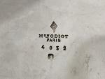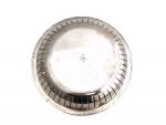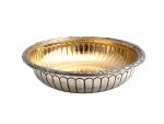 JATTE ronde en argent, l'intérieur vermeillé, modèle à côtes, la bordure moulurée d'une frise de feuilles rubanées Minerve. Orfèvre: ODIOT H.: 5 cm D.: 21.5 cm Poids: 514 gr