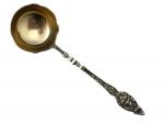 LOUCHE A CREME en argent et vermeil, chiffrée Minerve. Orfèvre: L et P L.: 15.5 cm Poids: 38 gr (dans son écrin d'origine à la forme)