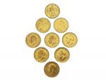 Lot de 9 souverains en or Lot conservé en banque, vendu sur désignation