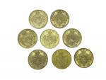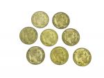 Lot de 8 pièces de 20 francs or belges Léopold II Lot conservé en banque, vendu sur désignation