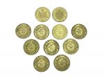 Lot de 11 pièces de 20 francs or Napoléon III Lot conservé en banque, vendu sur désignation