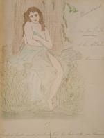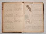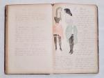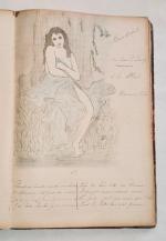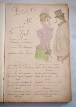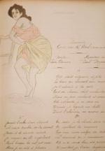(CURIOSA) Etonnante et très beau manuscrit autographe, rédigé par un dénommé Paul Delmet, vers 1915-1920. Environ 100 pages de poèmes en prose et de chansons badines, coquines et salaces. Et par certainespornographiques. Le tout agrémenté d'environ 40 dessins en couleurs parfois d'un caractère assez naïf et populaire, toutes finement coloriés.
