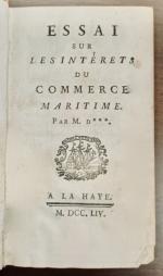 (COLONIES) Essai sur les Intérêts du Commerce Maritime Suivi de: Observations critiques et politiques sur le Commerce Maritime dans lesquelles on discute quelques points relatifs à l'industrie & au Commerce des Colonies Françoises... A La Haye et à Amsterdam, 1752. 2 volumes reliés ensemble, veau du temps