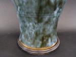 Important vase balustre en porcelaine émaillée bleu-vert nuancé. Haut : 72 cm, monté en lampe, cachet de Sèvres Napoléon III 1865 (fêle)