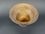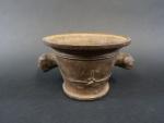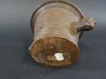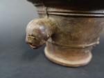 Mortier en fonte de fer, les prises latérales en forme de têtes humaires, le corps souligné de filets. Haut : 12,5 cm - Diam : 18 cm - Larg. aux anses : 21,5 cm