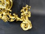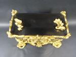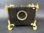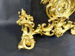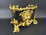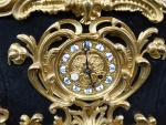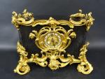 DENIERE à Paris : Pendule borne en marbre noir et bronze doré de style rocaille à décor de fleurs, rinceaux, secrétions etc, mouvement signé. Haut : 32 cm - Larg : 45 cm