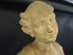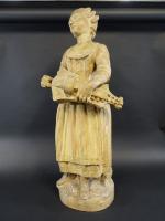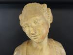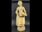 Important sujet représentant une joueuse de vielle en terre cuite, ép. XIX's. Haut : 88 cm