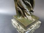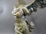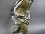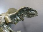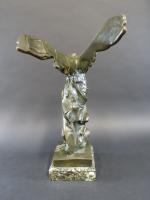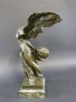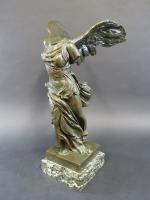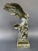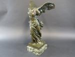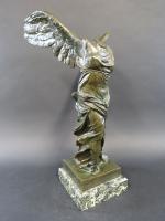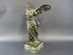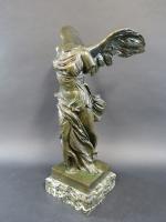 Victoire de Samothrace. Bronze à patine vert antique, cachet Musées Nationaux France, sur socle en marbre vert de mer. Haut. totale : 56 cm
