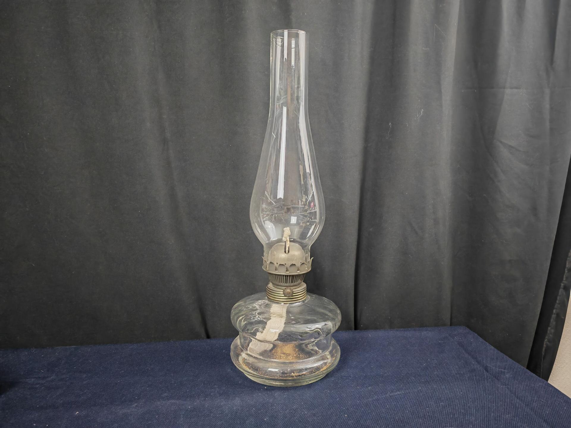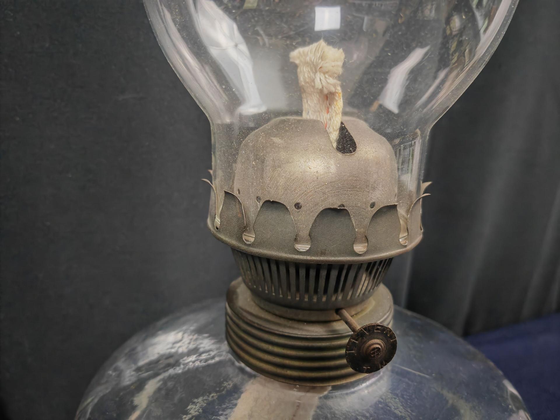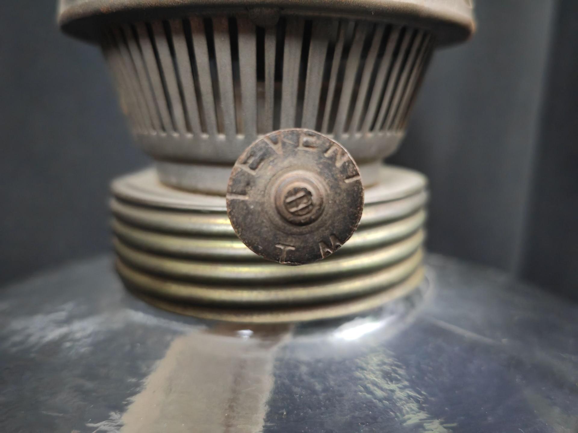 Ancienne lampe à pétrole en verre transparent jamais utilisée LEVENT hauteur 57 cm très bon état