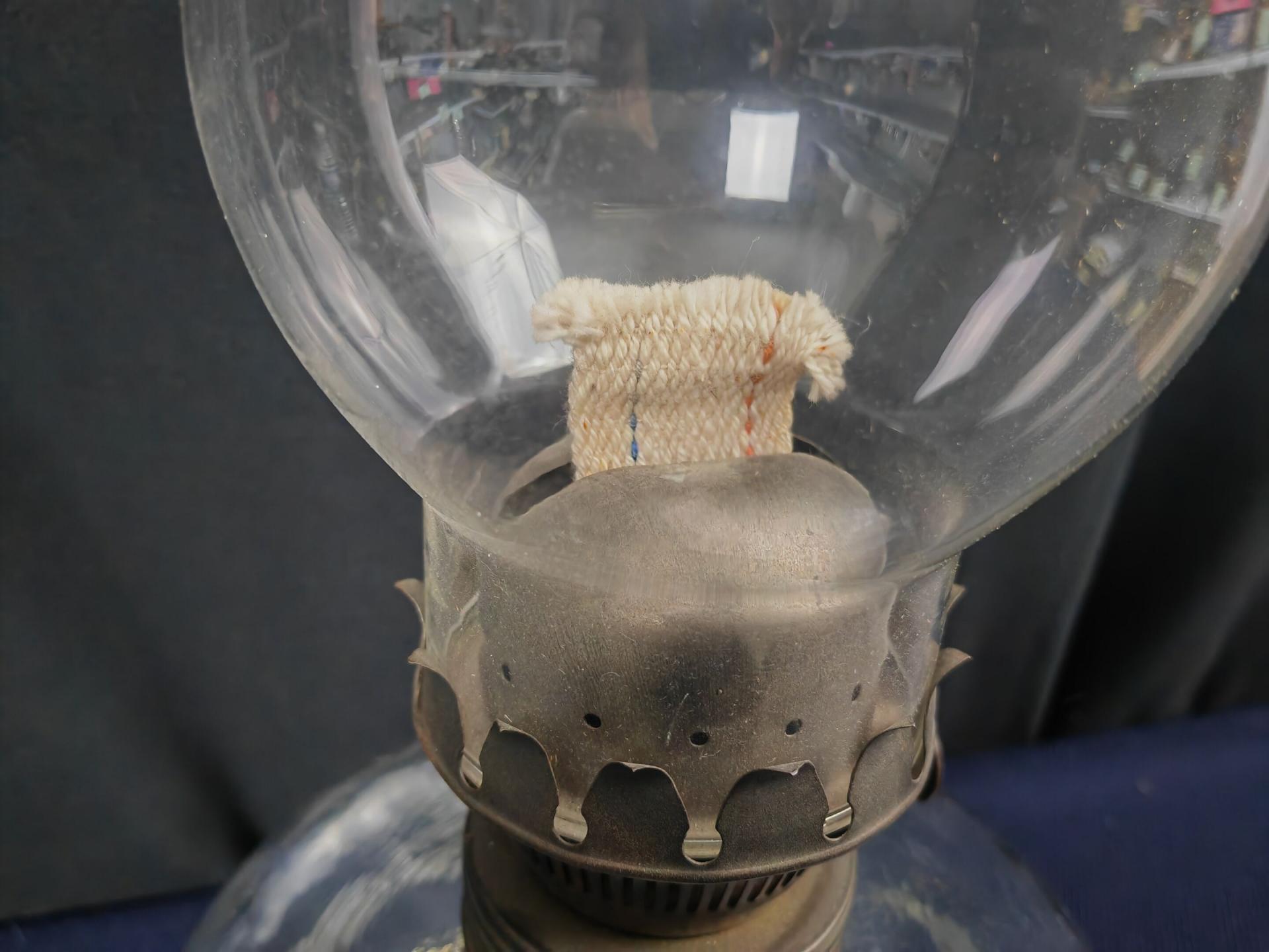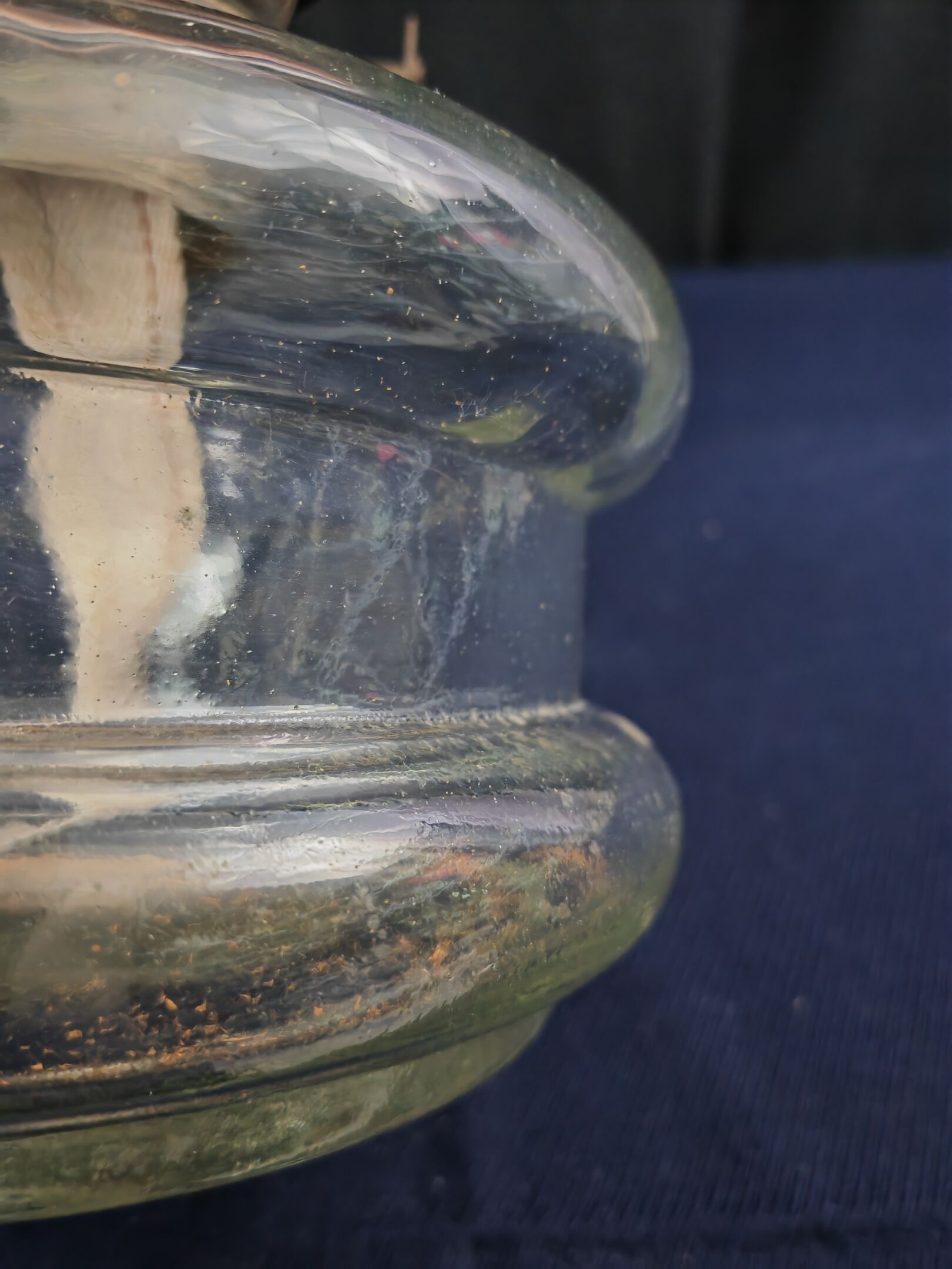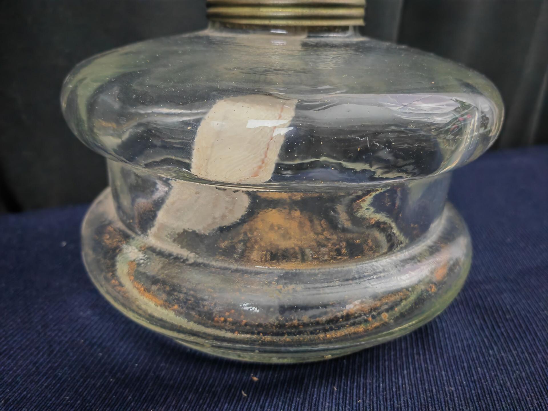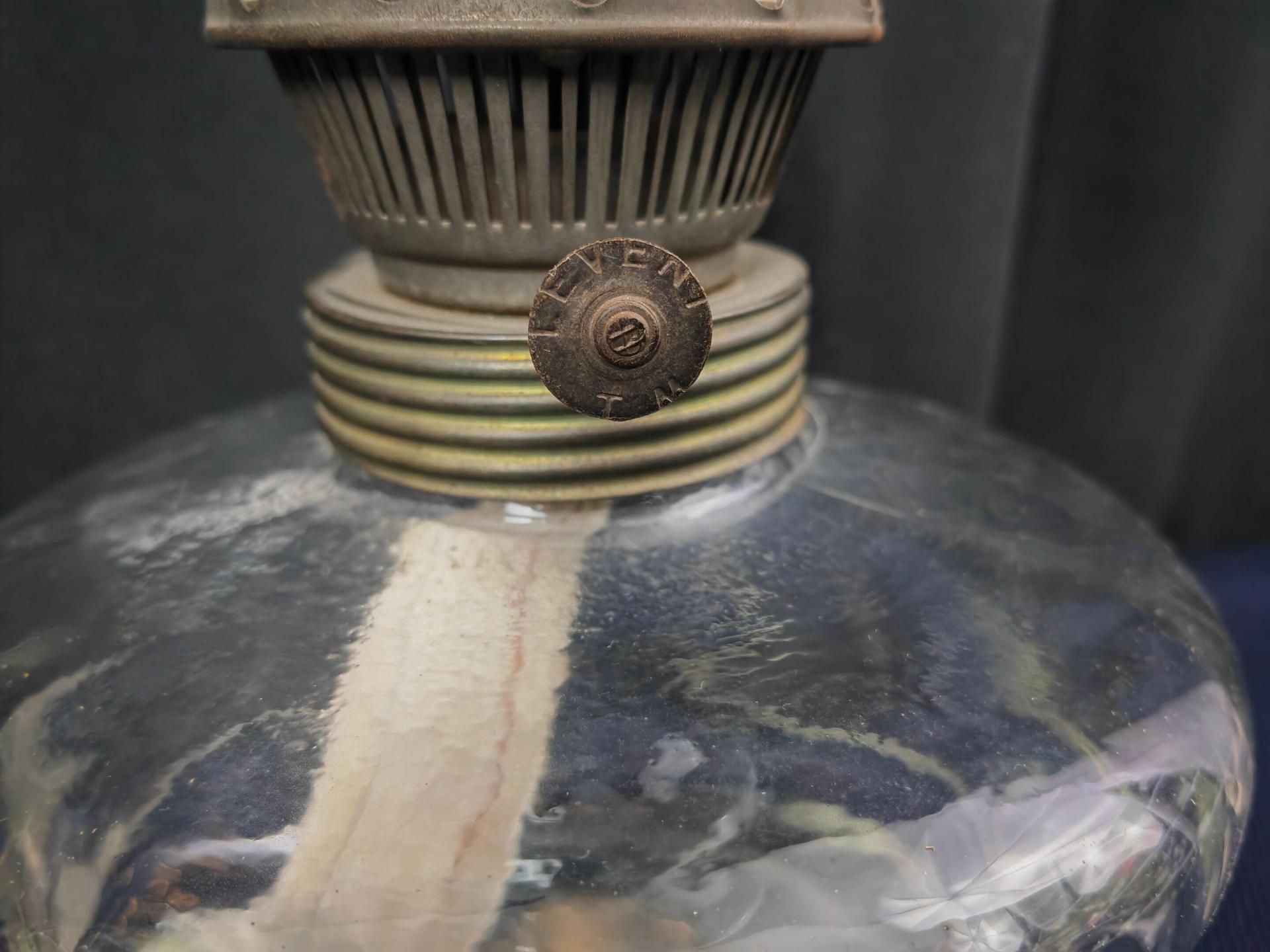 Ancienne lampe à pétrole en verre transparent jamais utilisée LEVENT hauteur 57 cm très bon état