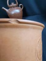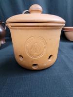 - 2 pots avec couvercles hauteur 12 cm 10 cm diamètre 14 cm 11 cm petite ébréchure , le tout