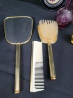 - Ensemble de 3 pièces miroir à main brosse et peigne.
