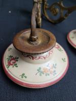 Lot de 2 paires de bougeoirs murales ancien laiton et porcelaine, longueur 22 cm environ diamètre de