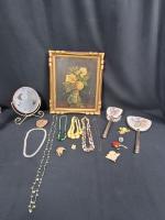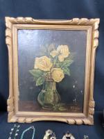 - Peinture nature morte encadrement bois et signé longueur 27 cm hauteur 33 cm .