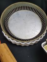 - 3 Tourtières dont 2 en métal et 1 en porcelaine.