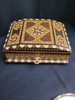 - Coffret à bijoux avec sa clef en nacre longueur 16 cm hauteur 7 cm largeur 11 cm.