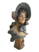 R. ALLARD (circa 1900) Jeune femme Buste en fonte peinte, signé H.: 36 cm (petites usures à la peinture)
