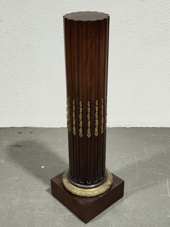 COLONNE tronquée formant SELLETTE en bois naturel, cannelée et rudentée de bronzes dorés Style Louis XVI H.: 118 cm