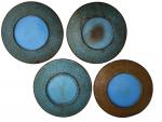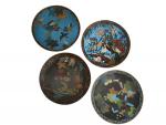 CHINE Quatre plats ronds en bronze cloisonné à décor aux émaux polychromes de fleurs et animaux D.: cm (accidents et manques)