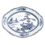 CHINE Plat ovale en porcelaine à décor bleu blanc de barrières et pagodes sur des tertres feuillagés XVIIIème 28 x 36.5 cm