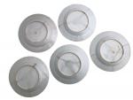 CHINE Compagnie des Indes Cinq assiettes rondes en porcelaine, différents modèles famille rose XVIIIème D.: 23 cm (égrenures, fêles et restaurations)