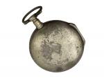MONTRE en argent. Boîtier sur charnière. Cadran avec pastilles chiffrées romains pour les heures et minuterie chemin de fer externe, au centre un émail polychrome avec la figure de l'empereur Napoléon 1er regardant la mer avec une longue vue. Mouvement avec remontage à clef, échappement à verge, coq ciselé et percé, balancier spiral et disque de réglage, signature sur la platine.