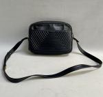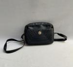 Sac en bandoulière en cuir lisse et matelassé bleu marine. Fermeture par glissière.