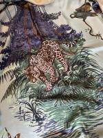 HERMÈS Paris " Équateur " par Robert Dallet 1ère édition en 1998 re 2019 Carré en soie imprimée à fond vert et indigo 140 x 140