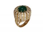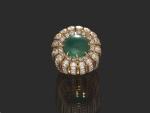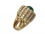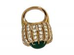 BAGUE dôme en or jaune avec cabochon de chrysoprase vert, la monture est sertie de diamants, poids 14,8g TDD 48/49
