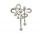 BROCHE ruban en or jaune et or gris sertie de diamants de taille ancienne poids brut 13.5 g larg 48 mm