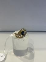 BAGUE or jaune diamants navette, diamants ronds et saphir en serti clos poids 6 g TDD 52