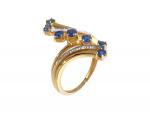 BAGUE or jaune et sept petits saphirs, poids 4,3g, TDD : 54