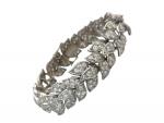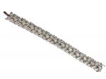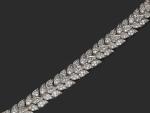 BRACELET articulé en or gris ou platine, à motifs de feuilles, pavé de diamants, poids 62g, long 17.5 cm larg 15 mm