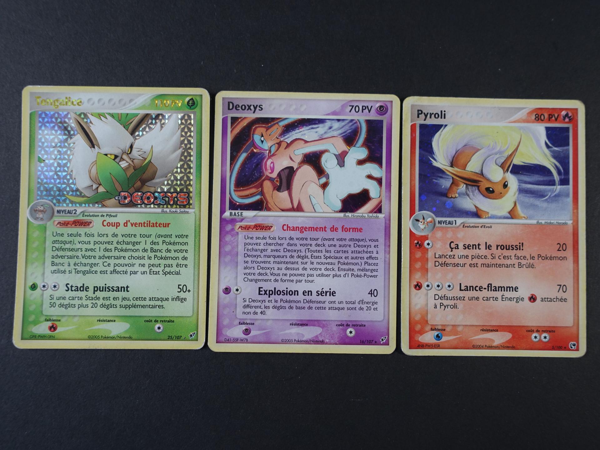 Carte Pokemon Contenu : lot de 2 cartes rares dont Deoxys et Tengalice Nous y ajoutons un Pyroli...