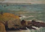 ECOLE FRANCAISE du XXème Voiliers près des côtes bretonnes Huile sur panneau 19 x 27 cm (petits accidents)