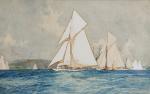 Charles Edward DIXON [britannique] (1872-1934) Régate, 1909. Aquarelle signée et datée en bas à gauche 24 x 39 cm à vue (piqûres)
