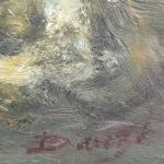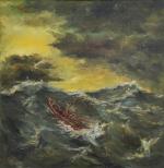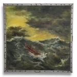 DANZE (XXème) Le Raz de Sein, Bateau dans la tempête Huile sur panneau signée en bas à droite, située au dos 55.5 x 55.5 cm