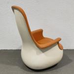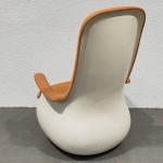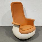 Fauteuil à haut dossier, la coque en fibre de verre et polyester laqué blanc, la garniture recouverte de tissu orange
