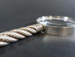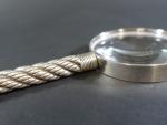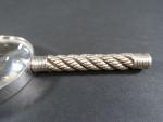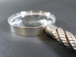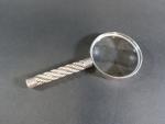 HERMES Paris : loupe en métal argenté, la prise en forme de cordage, signée. Long. 19,5 cm.