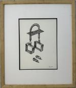 ECOLE CONTEMPORAINE Les valises Encre signée en bas à droite 30 x 22.5 cm à vue
