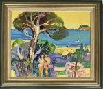 Karine BREVANT (né en 1947) La belle saison Huile sur toile signée en bas à droite, contresignée et titrée au dos 46 x 55 cm