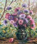 Christophe RIELLAND (né en 1932) Bouquet de fleurs Huile sur panneau signée en bas à gauche 55 x 46 cm