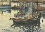 Eugène VILLON (1879-1951) Sardiniers dans le port, 1936. Aquarelle signée et datée en bas à gauche 27 x 38 cm à vue (piqûres)
