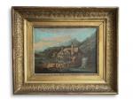 Ecole française du début du XIXème siècle Paysage animé Huile sur toile 30 x 40 cm