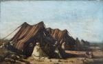 ECOLE ORIENTALISTE du XIXème Le campement Huile sur toile 24.5 x 38 cm (accidents et restaurations)