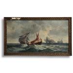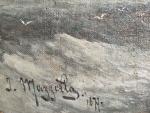 Jean MAZELLA (XIXème - XXème) Bateaux dans la tempête, 1877. Huile sur toile signée et datée en bas à gauche 35.5 x 65.5 cm (accidents et restaurations)