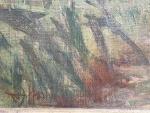 ECOLE d'EUROPE DE L'EST Personnages sur le chemin Huile sur toile signée en bas à gauche 40.5 x 60.5 cm (petits accidents)