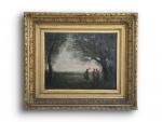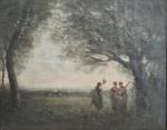 ECOLE FRANCAISE fin XIXème La danse Huile sur toile portant une signature apocryphe Corot en bas à gauche 33 x 41 cm