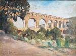 Abel LAUVRAY (1870-1950) Le pont du Gard Huile sur toile signée en bas à gauche 60.5 x 81 cm Bibliographie: - Y. et L. Jaubert, Abel Lauvray, catalogue raisonné, oeuvre référencée sous le n°165