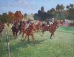 Louis-Ferdinand MALESPINA (1874-1940) La course de chevaux Huile sur isorel signée en bas à droite 50 x 65 cm